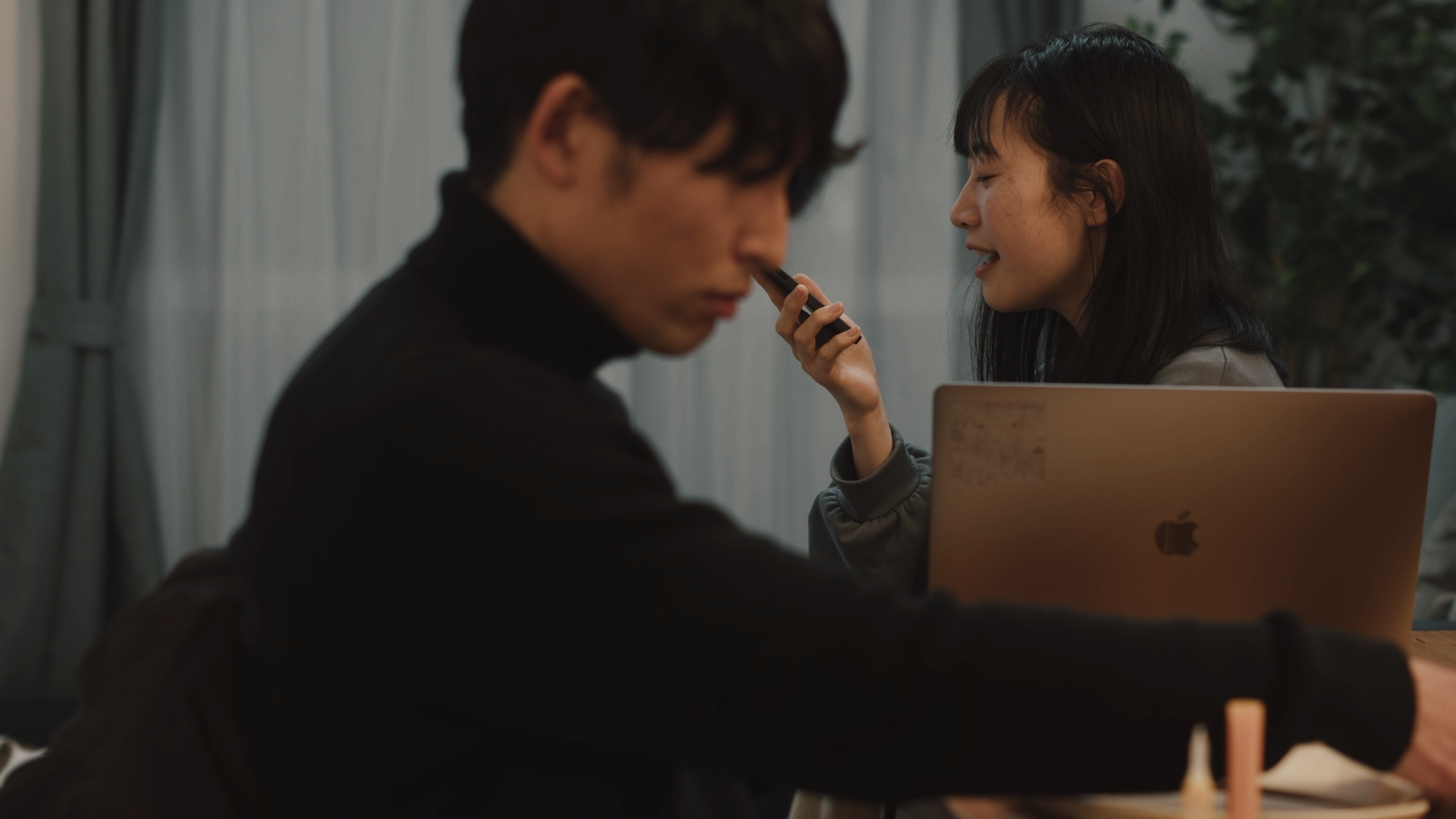 休日労働 (2022) 12min<物語> 日曜日、小学校教員のつぼみ(25歳)は翌日に行われる合唱祭のサプライズソングとして担任教員の歌声を重ねて合唱テイストにする作業を自宅で行なっていたが、、。 フィックス & ワンカットで撮影された、歌声と記録と修復のお話。出演:片岡 雛子 大参 真司監督・脚本・撮影・編集・整音 岩田 隼之介制作:辻 卓馬 録音:前田 啓太 助監督:櫻木 千春