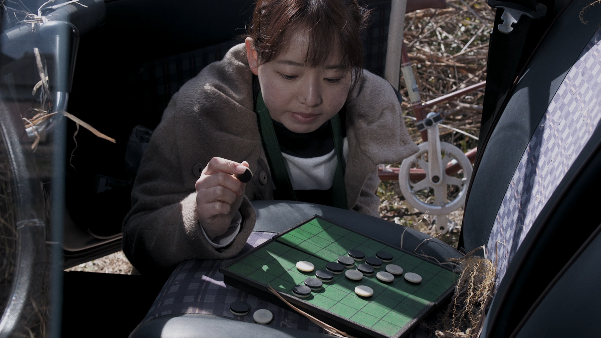 中学校を卒業したばかりのミキはアルバイト面接でとあるカフェにやってきた、カフェの敷地内に廃車があることに気づいたミキは兄から借りたカメラで撮影する、車内を覗くとゲーム途中のオセロがあることに気付く、ミキはふとオセロのコマを置きゲームを再開する。