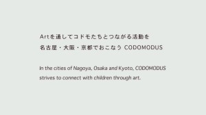 NPO法人 ラマモンソレイユ コドモダス http://lamamansoleil.org/ 児童発達支援・放課後等デイサービス 音楽療法/アート療法 出張リトミック 子どもを対象としたイベント運営 https://www.facebook.com/pages/%E3%83... Artを通してコドモたちとつながる活動を 名古屋・大阪・京都でおこなうCODOMODUS CODOMODUSで日々受ける感動を 多くの方々に伝えたいという想いから始めた今回の企画 初の試みということもあり映像作品としてはまだ未熟ではありますが… それ故にStaff一同今後の展開・kidsの成長が楽しみです 私たちはArtの持つ力を信じて CODOMODUS kidsと共に表現を続けます YouTube 引用