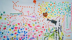夏期休暇特別企画 映像ワークショップ 平成29年8月7.9日 1200×1800(㎜)の大画面に十数名のコドモたちが絵具等を用いて自由に色を置いていく様を上から定点カメラで撮影し、それらをつなげることで彼らの「生の表現」を映像化することができました。 始めは多くの子が映像の原理を理解することができず、途中でみんなの心が折れそうになる場面も見られましたが、作業を進めるうちに彼らの意識は次第に変わっていき、中盤辺りから全員で話し合い、協力し合いながら、楽しく撮影を進めることができました。 撮影時間は両日合わせて合計6時間程。 しかし映像作品になると、たった1分! 今回のワークショップでアニメーション制作に膨大な時間が費やされている事実を知ることができたと思います。 これによって世の中に存在するアニメーションに対する彼らの観方も大きく変わったのではと思います。 近年は自己表現することの大切さが軽く見られるコトが増えたように感じます。 コドモたちには創作活動を通して、自分を表現するコトの「大切さ」「大変さ」「素晴らしさ」を知ってもらえると嬉しく思います。 NPO法人ラマモンソレイユ ボーダーレス アート スタジオ コドモダス シルヴァン YouTube引用